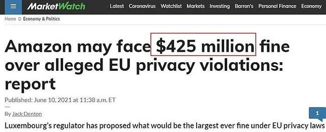 亚马逊从2019年起就累计收到了诸如德国、意大利、卢森堡等多个反垄断及隐私保护罚单,总额超过10多亿欧元。