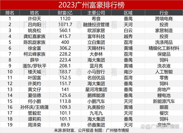 该榜单中,全国最有钱的500人名单内,广州有19名富豪上榜,其中番禺占了6个,以一区之力贡献了全市1/3。