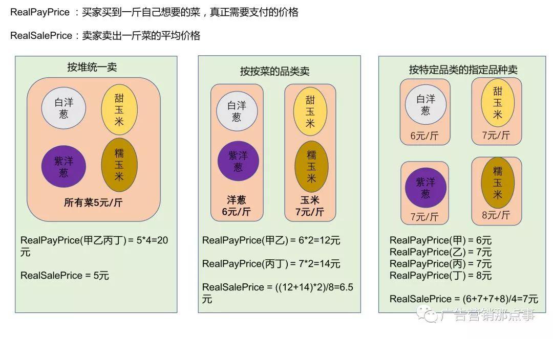 显然,相比前面两种售卖方式,第三种售卖方式,卖家可以卖出更多的钱,而买家可以花更少的钱买得自己想要的东西。很好,双赢!