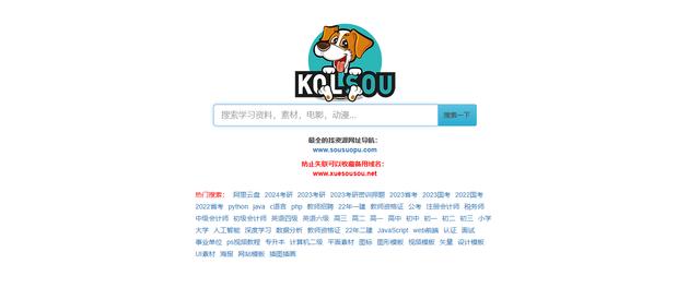 一个比较强大的资源搜索网站,支持免费搜索学习教材、图片素材、影视、音频、动漫等资源,首页还提供了很多热门的搜索标签。