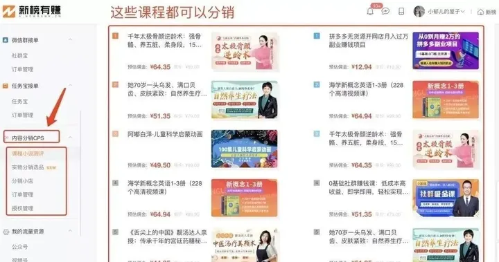 开通要求:在新榜有赚平台,专门有一个内容分销CPS,可以分销一些好课或者好物,我们也可以在这里开通分销小店,把适合公众号的产品上架到这里,读者从链接进入购买,我们就会有一定的佣金。