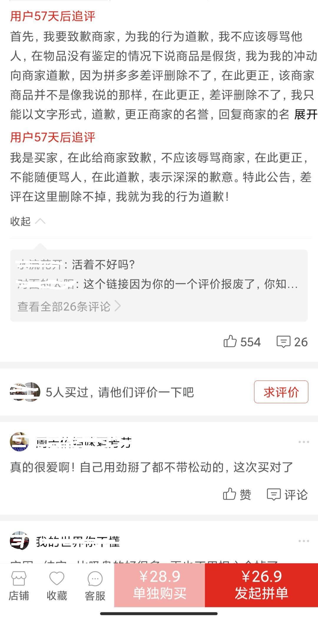 而从店铺最新的追评上,我们能看到“铁扇公主”的态度与之前来了180度大转弯,并在评价中表示已经认识到自己的错误,向商家道歉。