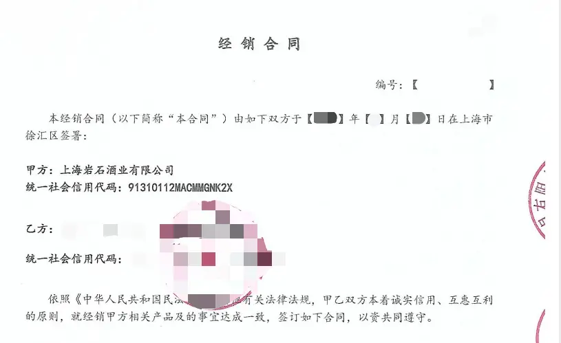 图说:受访者提供的注册第三方公司和上海贵酒子公司签约的经销商合同