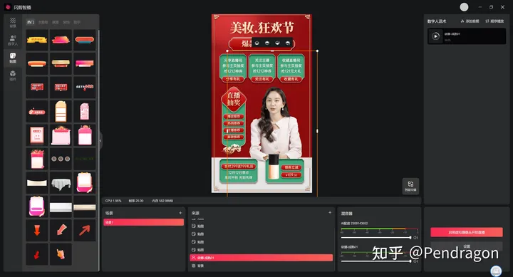 从产品体验上看,风平智能和硅基智能的数字人直播产品的设计思路有比较明显的不同,它并没有针对某一类直播做专门优化,你可以说他通用性更高,也可以说在直播带货这个特定方向上,没有硅基智能更细致与专业。但是,你用风平智能的功能,也可以搭建出来和硅基相同效果的直播间,关键还是灵活使用。