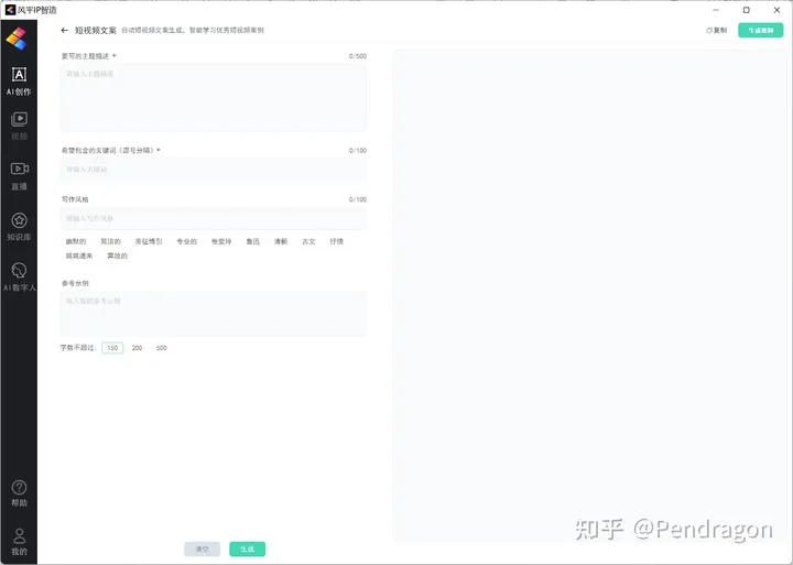 「风平IP智造」虽然对外宣传的AI功能虽然还没有全部实现,但已经具备AI文案撰写、AI文案改写,以及AI直播互动能能。前者简单的说就是类似ChatGPT或者文心一言的功能,输入你的想法就可以为你写文案,也可以给它一段文案,让它来改写。后者是智能直播互动能力,就是用类ChatGPT大语言模型学习直播内容,实现自动回答问题,甚至与直播间用户闲聊,「风平IP智造」应该是截稿时业内唯一实现这一功能的产品。