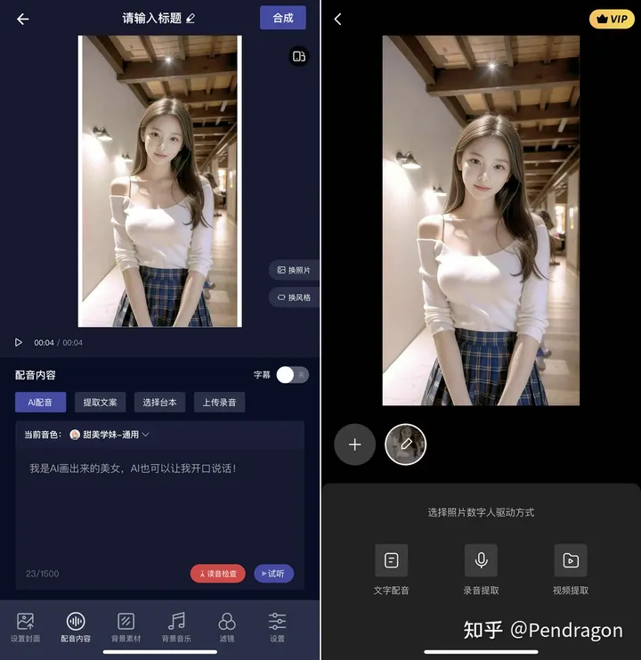 另外,现在还有一种让照片说话的玩法,国外成名比较早的AI项目是D-ID,在其火爆之后,最近国内一些数字人产品也加入了这个功能,用的也是AI模拟口型的方法,让照片的中人物的嘴动起来说话,但由于效果有限,一般只作为附加小功能,其中硅基和闪剪的短视频产品都有这项功能。