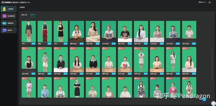四款数字人平台都提供了一定数量的公用数字人,所有付费会员都可以直接使用。其中百度的公用数字人数目前大概有56个,全部数字人标准统一,模特质量都很高。硅基智能提供了51个,数量多但质量有些参差不齐,有些数字人像是充数的感觉。风平智能的公用数字人最少,仅为14个,不过建模标准相对统一,品质良好,14个人里面有11个面孔,重复率低是个亮点。