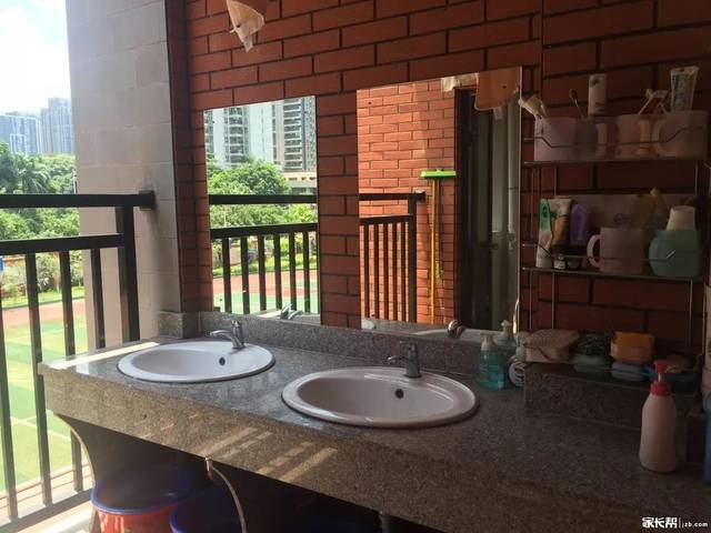 女生的宿舍高12层,设有两个电梯,住着初中和高中的全体女生,也是每间住5人,市内实施与男生一样,比男生宿舍略显宽敞,阳台有一厕所及一冲凉房。