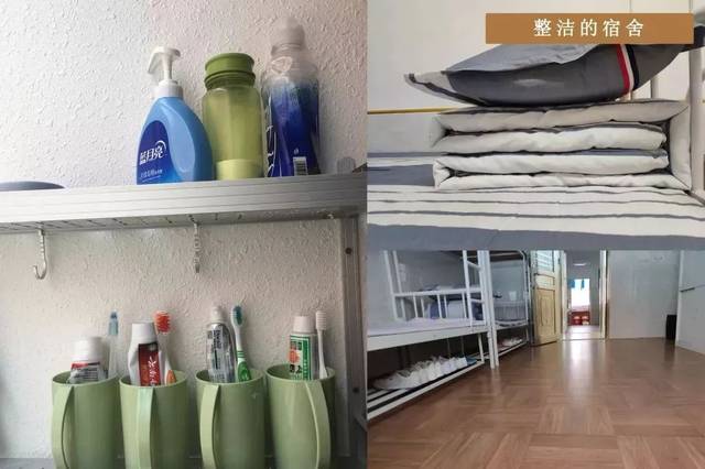 宿舍6人一间宿舍。宿舍内有空调及卫生间、烘干机、直饮水、洗衣机等学校的所有设施齐全。原则上学校一律禁止带手机等电子产品,特殊情况需要写申请(床上用品自带)。