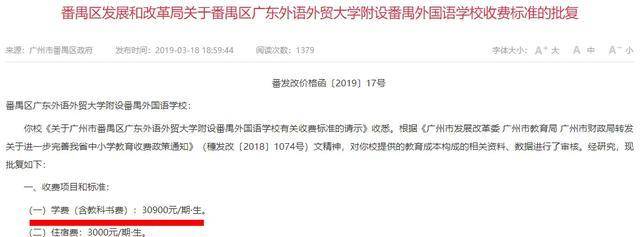 部落深入查阅“广东外语外贸大学附设外国语学校”项目遍及很多城市,它的收费又将会是如何?我们就以邻旁的广东外语外贸大学附设番禺外国语学校的中小学2019年批复的收费参考标准,