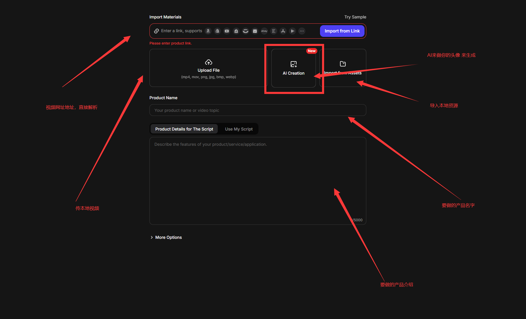 接下来 我在youtube随便找了一个视频试试,这里的导入就是导入素材,你要数字人需要介绍的产品,如果我导入化妆品视频那么就是以化妆品为素材。