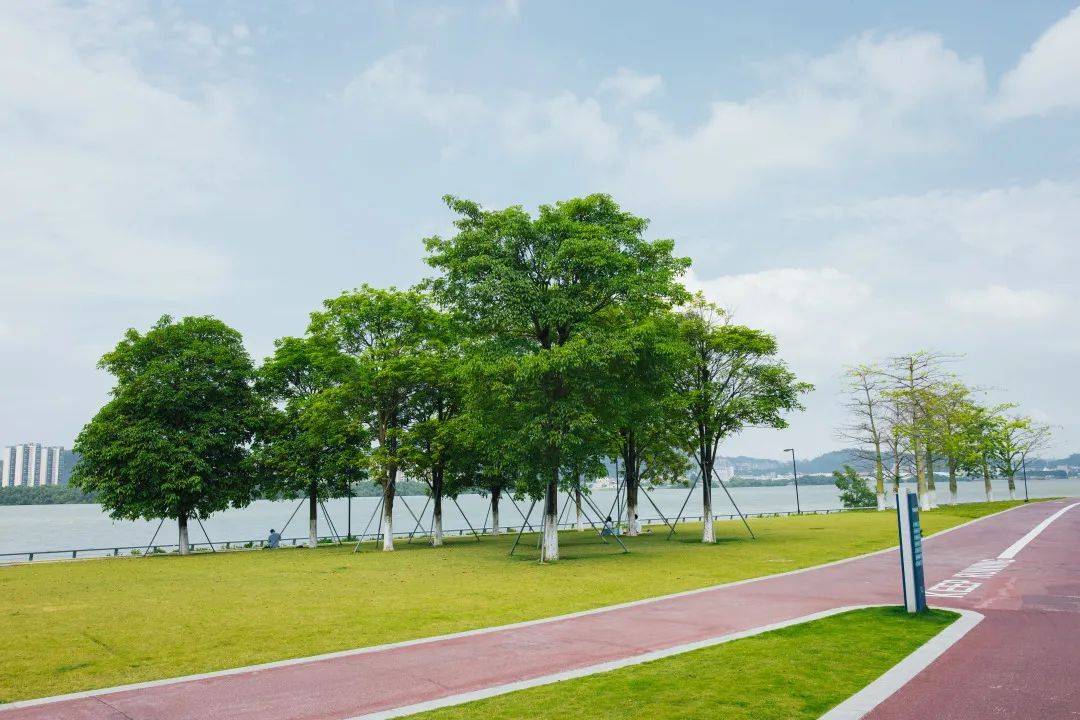 南岸景观分为4块区域,分别是:丝路广场和艺术栈道区域、钟楼区域、绿茵广场区域、微风广场区域。