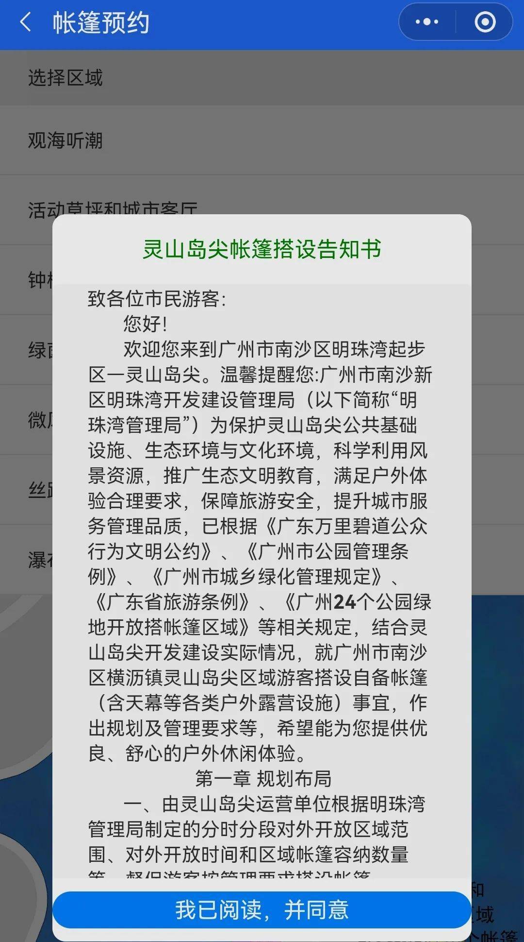 我们约定,游客自行在灵山岛尖指定区域内搭设帐篷等露营设施,应当服从灵山岛尖运营单位、横沥镇城市综合执法大队、南沙区机动大队、横沥镇派出所的联合管理。