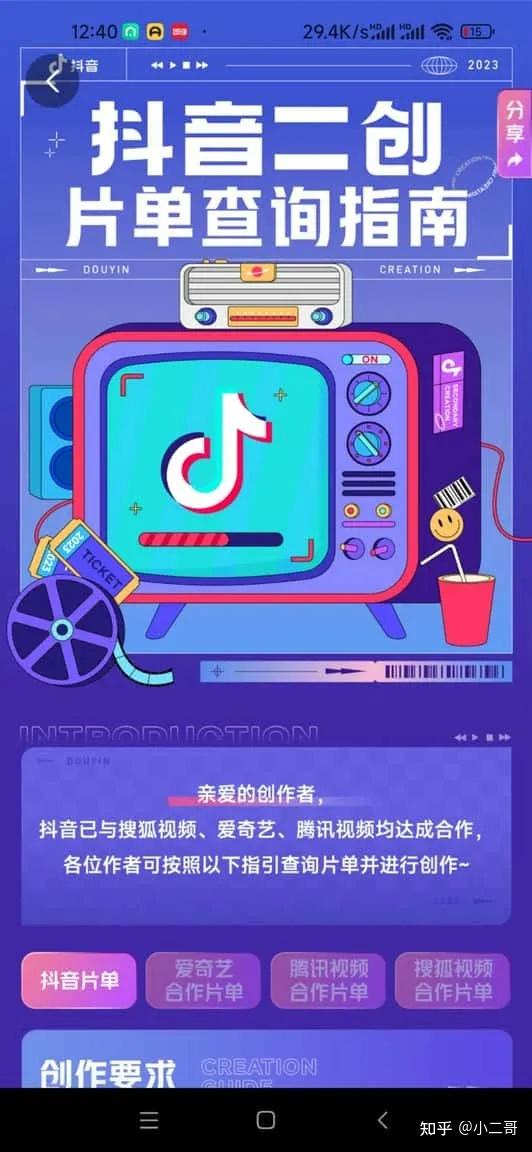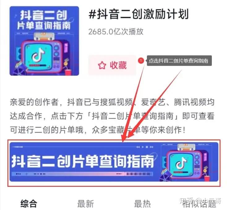 ②点击话题下方的【抖音二创片单查询指南】图片!